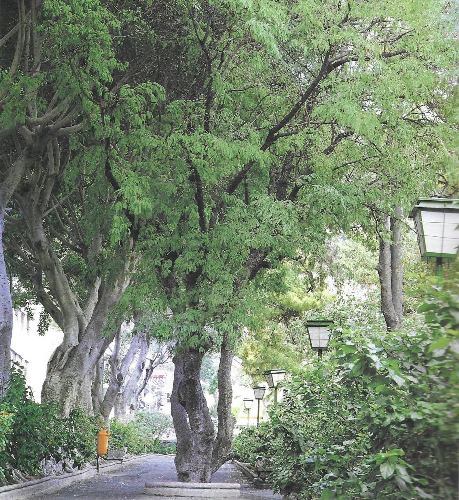 Santa Cruz contaba con muy poca vegetación hasta que, en 1787, fueron plantados los primeros 81 árboles en la Alameda del Muelle; en 1854, el capitán general Jaime Ortega mandó traer de Cuba 336 Laureles de India para adornar lo que, en su honor, se llamaría Paseo de Ortega, actual Rambla de Santa Cruz y, en 1864, el capitán Domingo Serís Granier trajo de Cuba 37 Laureles de India para que dieran sombra en la Plaza del Príncipe.