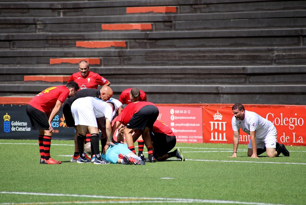 Una de las lesiones del “Partido lustral” entre los veteranos del Mensajero y Tenisca.