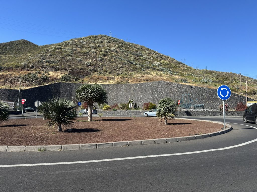La rotonda actualmente, con un drago en el centro (que ya puestos, es un obstáculo) mientras la escultura de Ibrahim aparece al fondo, apartada a un lado de la carretera.