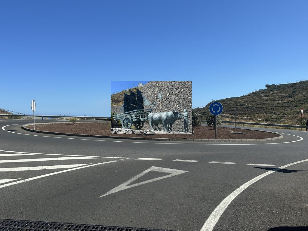 Fotomontaje artesanal (hecho por mi) con la escultura del barco en el centro de la rotonda de la carretera de Los Campitos. ¿Creen que pasaría algo por ponerla ahí?
