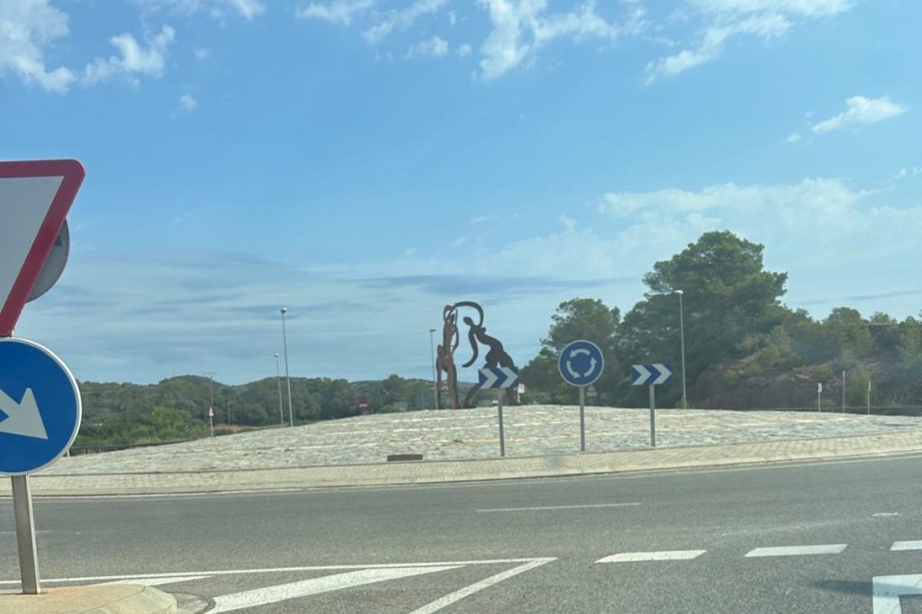 Foto que me ha hecho llegar mi amigo Johnny, de una rotonda en Menorca, con tremenda escultura en su mismo centro. Y la han autorizado y no pasa nada.
