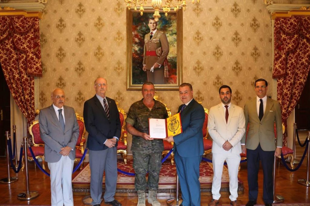 Julio Salom y Alexis Díaz (en el centro) en la entrega de la carta de la Casa Real nombrando al jefe del Mando de Canarias como representante de S.M. El Rey.