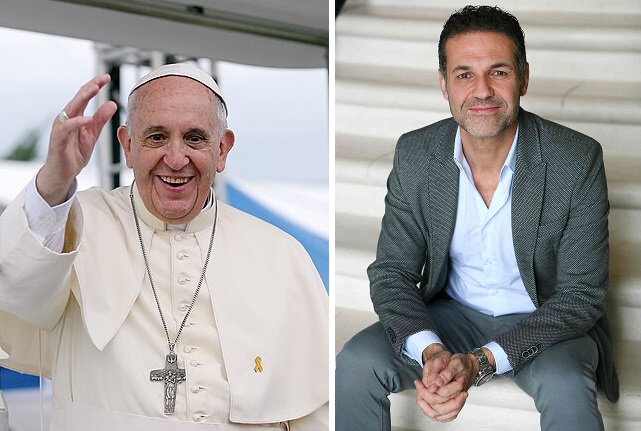 Papa Francisco (i) junto al médico y escritor Khaled Hosseini