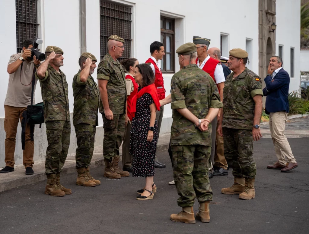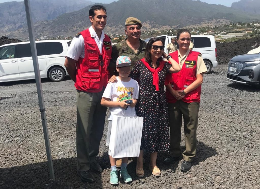 - La ministra de Defensa, Margarita Robles, regresó hace unos días a La Palma y estuvo allí toda una jornada de visita y trabajo, acompañada por el teniente general Julio Salom, jefe del Mando de Canarias. Su visita estaba relacionada con aquélla que hizo en el pasado mes de junio, durante la semana de las Fuerzas Armadas, acompañando a SS.MM. los Reyes, Felipe VI y Leticia, que quisieron visitar las zonas afectadas por la erupción del volcán Tajogaite. En aquellos momentos y durante el encuentro con los Reyes, algunas personas afectadas manifestaron los daños psicológicos que aún perduraban en ellas por la erupción. La ministra ofreció desplegar un equipo de psicólogos militares que, apoyados en la infraestructura que les de la Unidad de Apoyo a la Proyección (UAPRO) en el acuartelamiento de “El Fuerte”, han estado y siguen trabajando, realizando trabajos de campo en diversas zonas de los municipios de El Paso, Tazacorte y Los Llanos de Aridane, con resultados muy satisfactorios en muchas personas, que lo reconocen y agradecen.