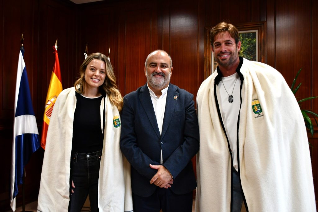 De nuevo la foto de Escolástico Gil (c) con Adriana Torrebejarano (i) y William Levi, con “manta esperancera” que tiene el escudo de El Rosario y no sabemos si etiqueta