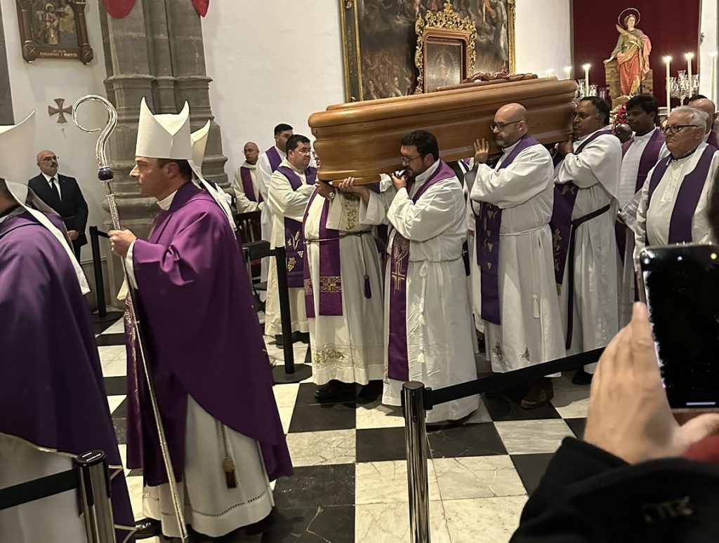 La procesión exequial, ya dentro de la catedral, presidida por el actual obispo, Don Eloy Santiago. El ataúd con los restos mortales de Don Bernardo es cargado por seis sacerdotes y la comitiva acompañada por más de cien sacerdotes diocesanos.