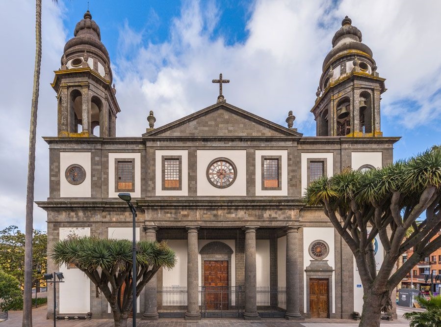 Fachada de la Catedral de La Laguna, restaurada y rehabilitada con muchos donativos, como el de Santi Borrella, a cambio del mojo picón de Don Bernardo.