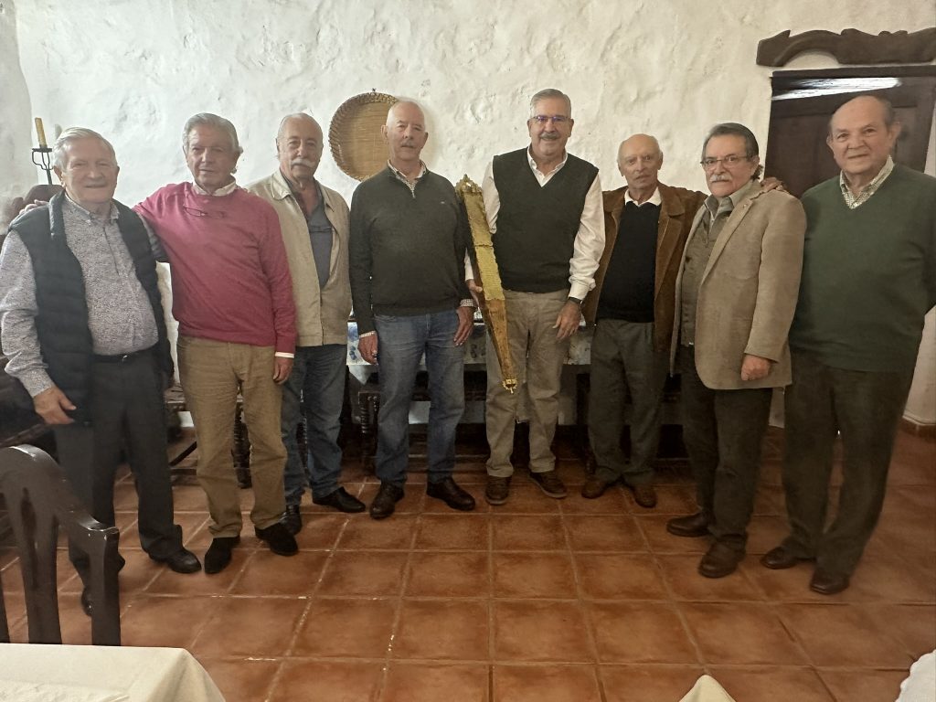 El nuevo Macana, con el anterior y los miembros del sanedrín. De Izda. a Dcha.: Martín Palazón, Ángel Oliva, Rafael Perera, Fernando Hernández-Abad, Francisco González Aledo, Esteban Barreto, Antonio De la Cruz y Domingo Luis Martín.