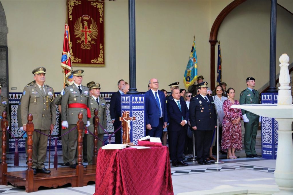 Momento en el que el general de división Alfonso Pardo de Santayana Galbis jura su cargo y toma posesión de su cargo de jefe del Estado Mayor del Mando de Canarias.