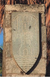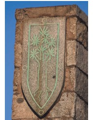 Finalmente, el escudo de La Orotava. Los dragos, símbolo botánico del valle Longevidad, identidad guanche, patrimonio natural. El equilibrio y la estructura territorial (los círculos). Los puntos esenciales del territorio orotavense. Una síntesis moderna del paisaje más célebre de Tenerife, Valle fértil, vegetación exuberante, armonía natural Es uno de los escudos más bellos y conceptuales del monumento.