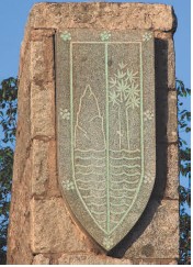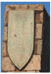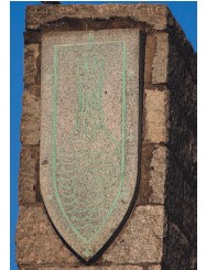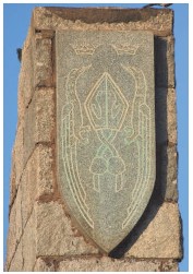 Los escudos heráldicos que forman parte del monumento se describen de la siguiente manera: